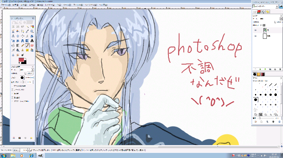 なんだか最近フォトショが不調です。 塗れば1秒遅れで表示され、 エフェクト掛ければ応答なし。 今まで制作はMac in フォトショでやってきましたが この際Winでも作業できるようにフリーソフト探しの旅へ。 色々試した結果、GIMP2に落ち着きました。 使い勝手がフォトショ風で、アドビ信者の自分には最高です。 難点を挙げるとすれば「明るさ・コントラスト」のもっさり具合くらい。 あー、ようやくストレスなく絵が描けるー。